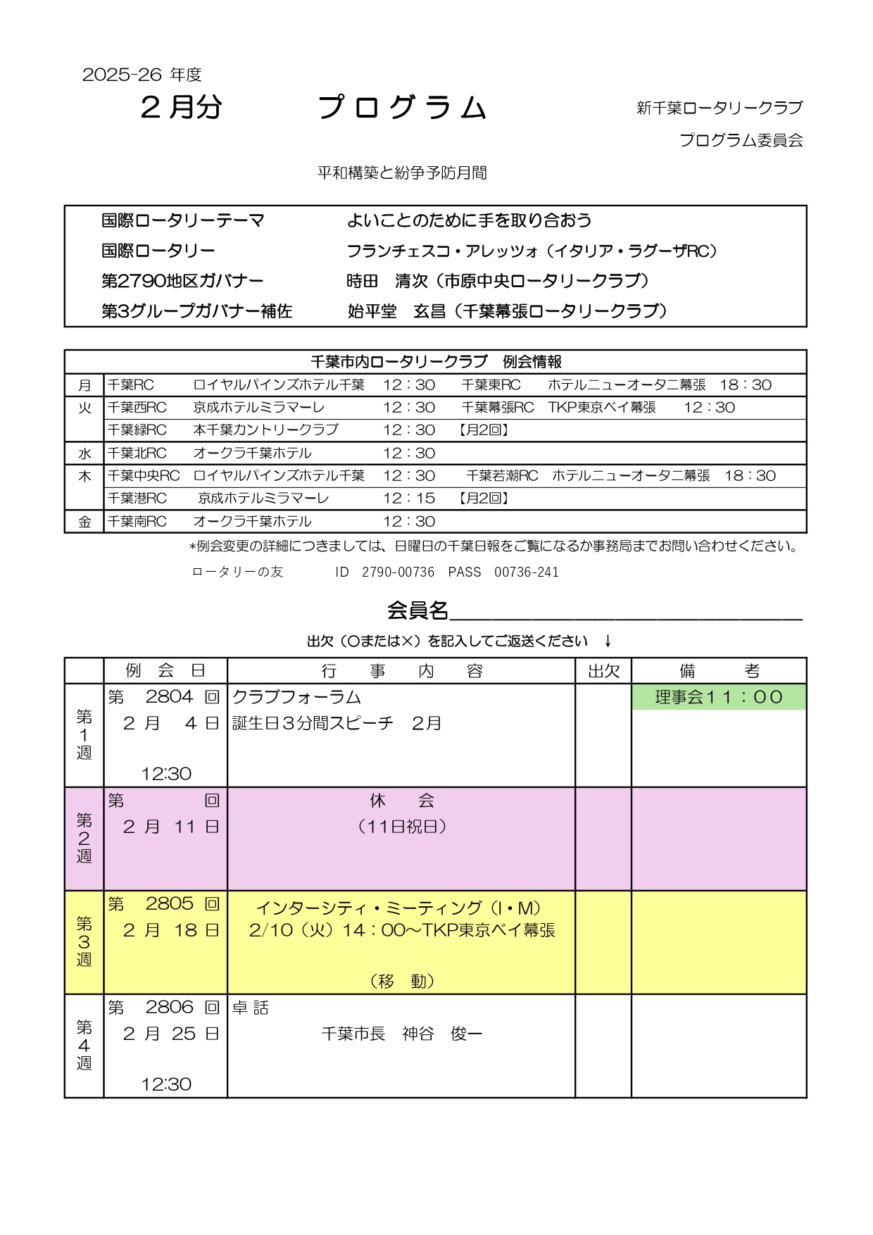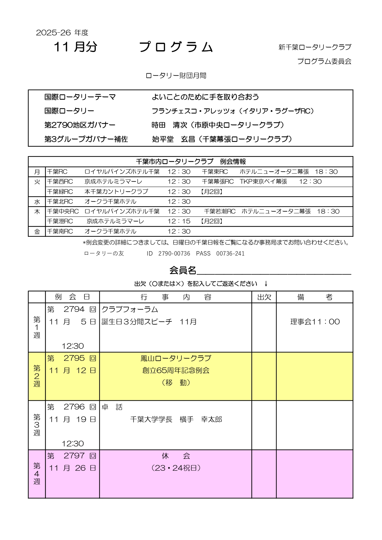 この場合でも、定例の開催場所・時間に受付がでていますので、署名するとメークアップとなります。